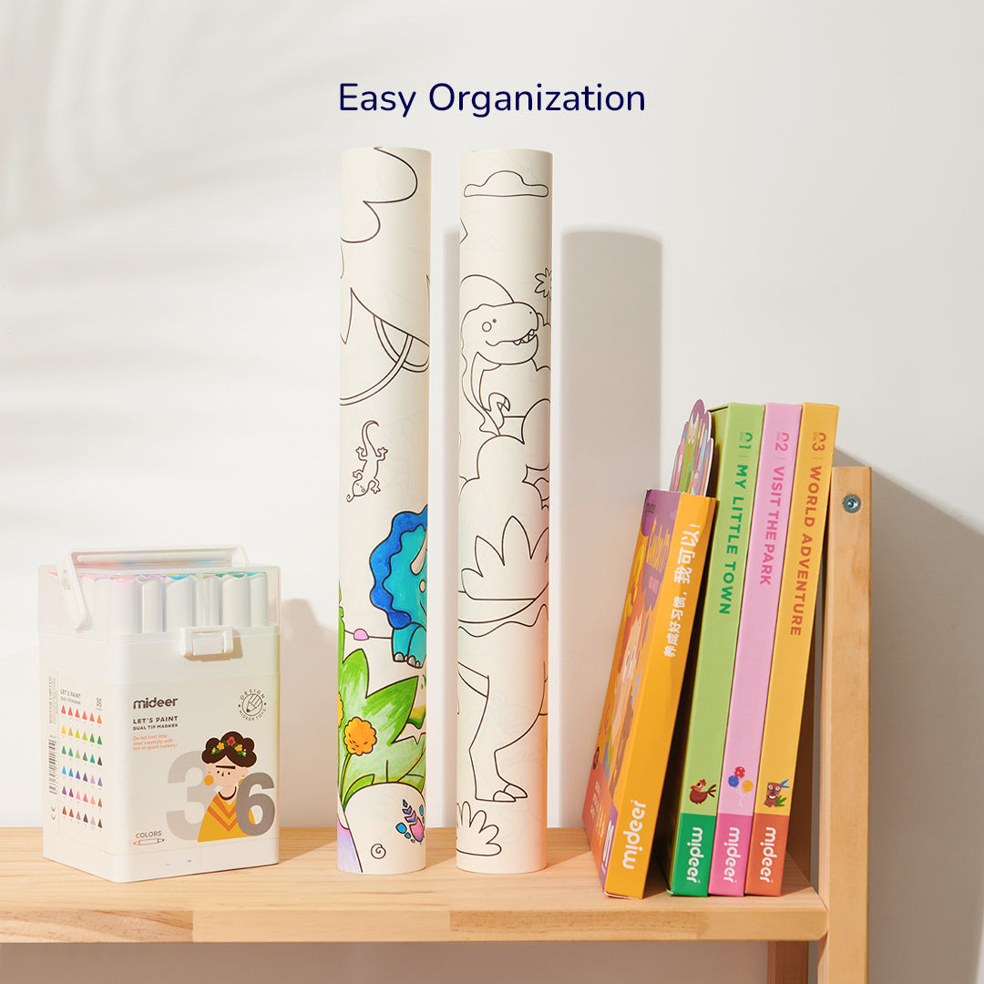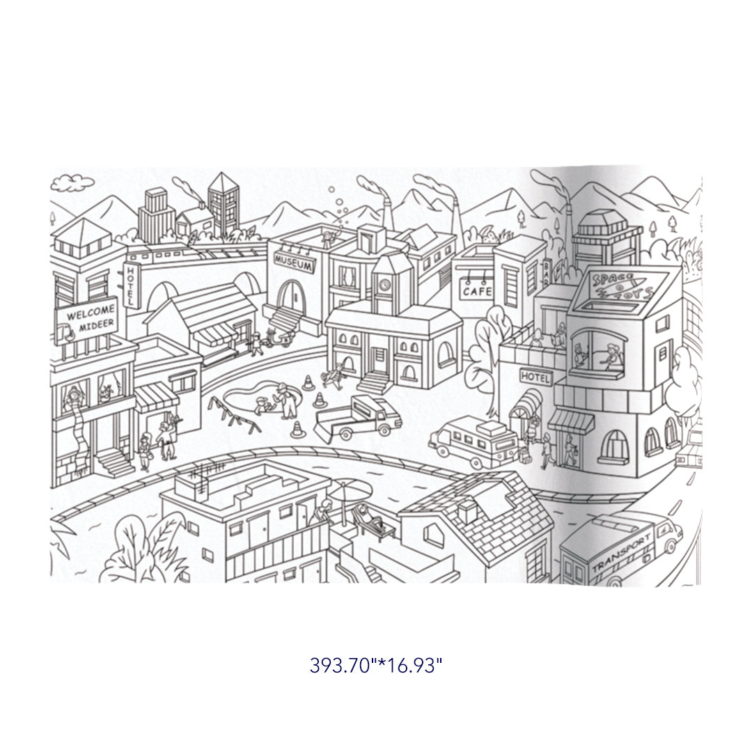 10 meters city themed colouring scroll brings rich plot and interesting scenes for children to explore more fun and knowledge during drawing. Patterns are different in every inch. Heavyweight paper that no bleeding issues. Soybean ink printing, odorless & safe. 500+ city elements reinforce the general knowledge of life cognition.